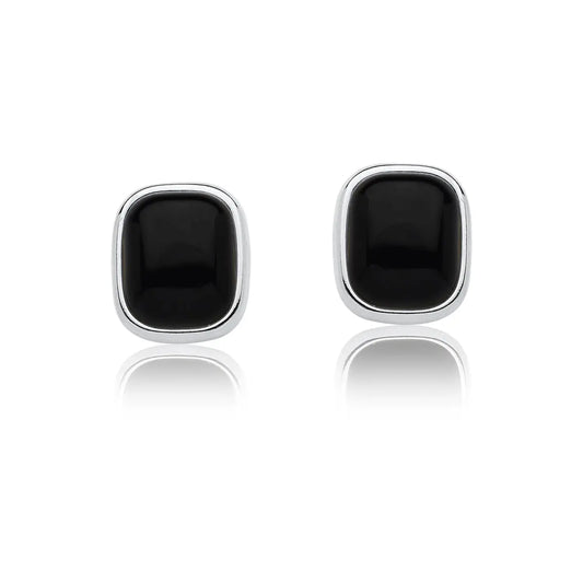 Black Agate Earrings – Rhodium (size large)