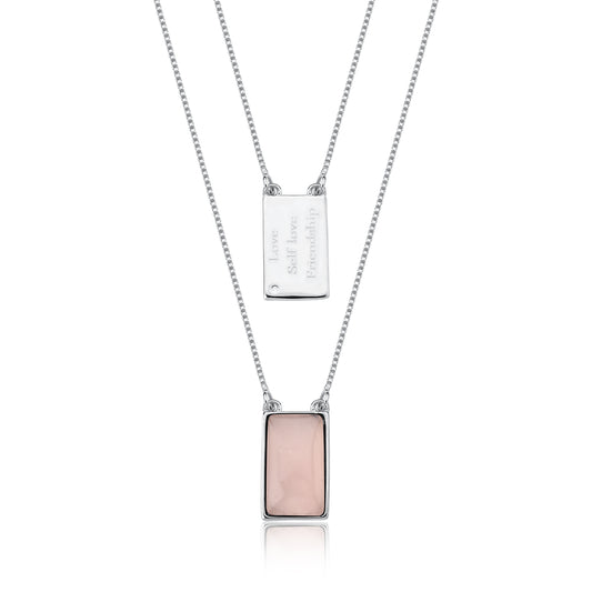 Rose Quartz Necklace – Rhodium (size large)
