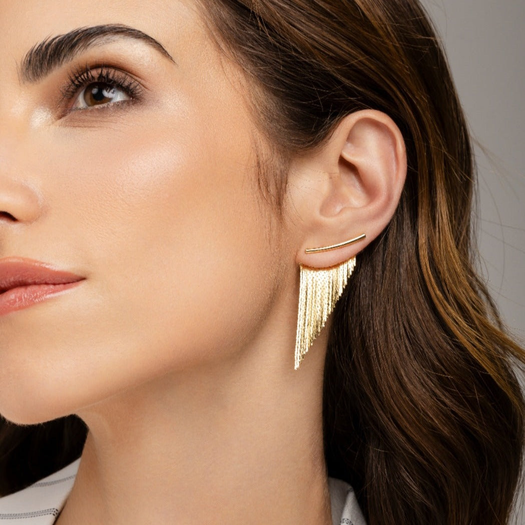 Tassel Fringe Earrings Gold Short